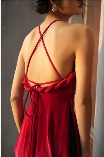 Vẻ đẹp của tóc vấn đuôi gà được tái hiện trong đường cúp ngực của Áo dài yếm Đan Tâm: qua phần đai nhồi vải bện thừng ôm tròn phần thân trước. Dây buộc cổ bắt chéo khoe trọn bờ vai và tấm lưng gợi cảm trở thành điểm nhấn đắt giá. Sự hài hòa giữa phom yếm và áo dài khiến Đan Tâm mang vẻ đẹp độc đáo, dễ dàng được yêu thích bởi phụ nữ yêu bản sắc truyền thống và cũng biết trân trọng sự đổi mới.
