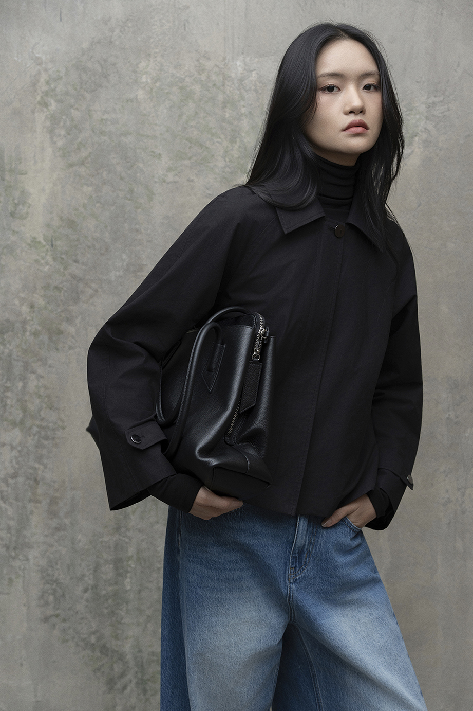 Thiết kế áo khoác dáng ngắn một nút cổ Đức hiện đại mang hơi hướng thanh lịch, hiện đại và có tính ứng dụng cao, vừa giúp giữ ấm nhẹ, vừa tạo cảm giác sang trọng và thời thượng. Vải có độ bền cao, đứng dáng, ít nhăn, đồng thời vẫn đảm bảo thoáng khí và thoải mái khi mặc. Kiểu dệt chéo tạo đường vân nghiêng tinh tế. Lớp lót mềm, nhẹ và mát, giúp áo êm ái khi chạm da, tăng độ sang trọng và giảm ma sát khi mặc. Sự kết hợp giữa cotton và lụa tạo nên độ thoáng khí, dễ chịu cho lớp lót.
