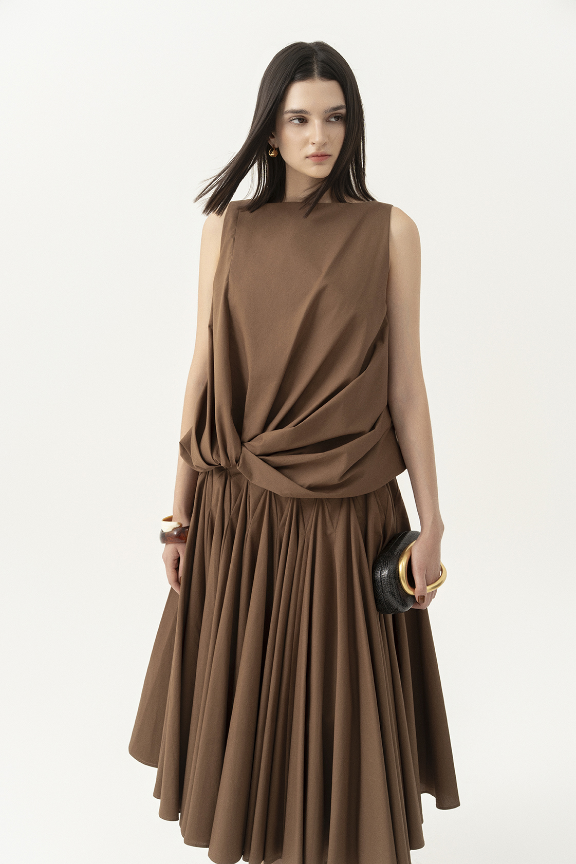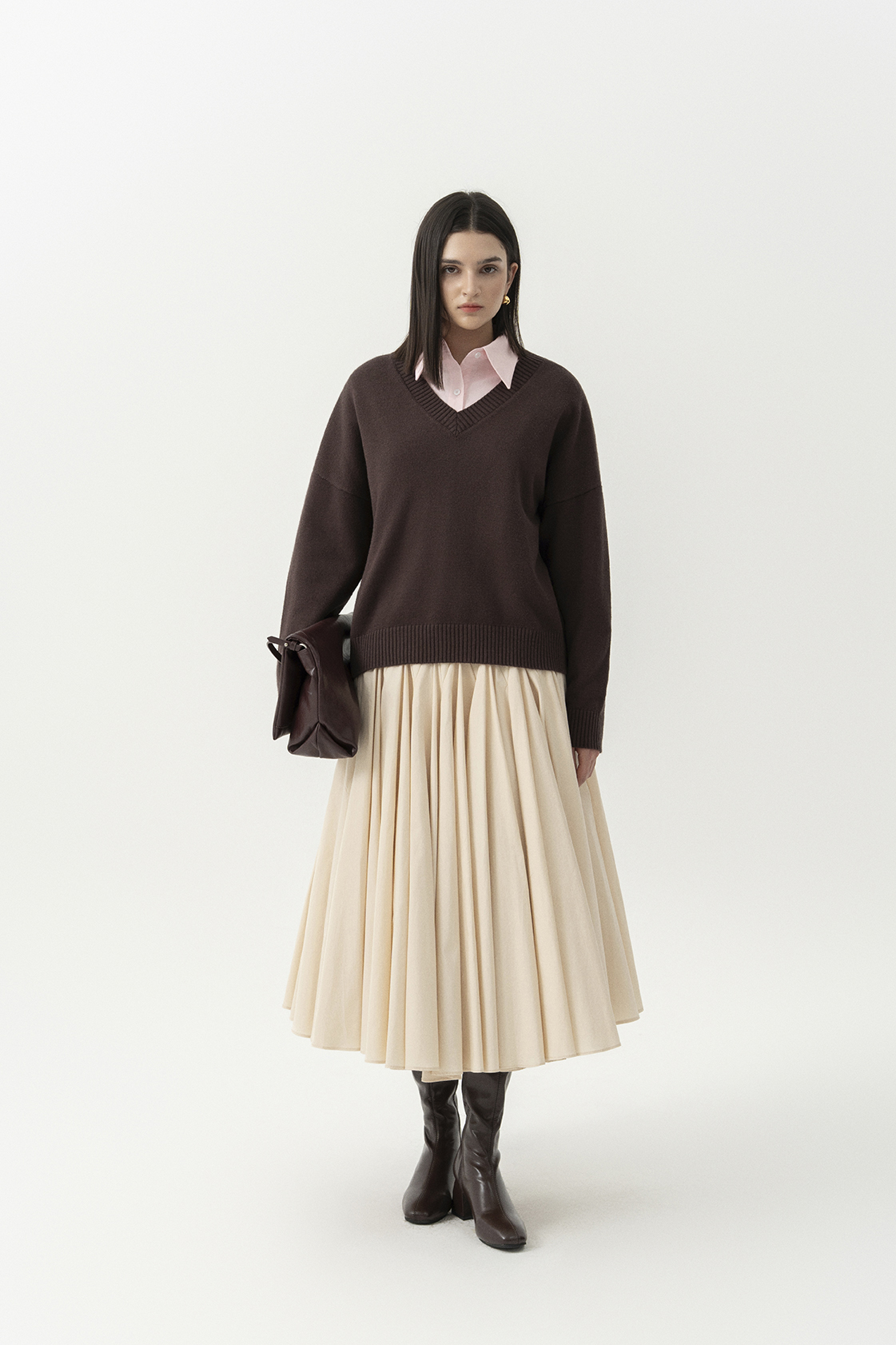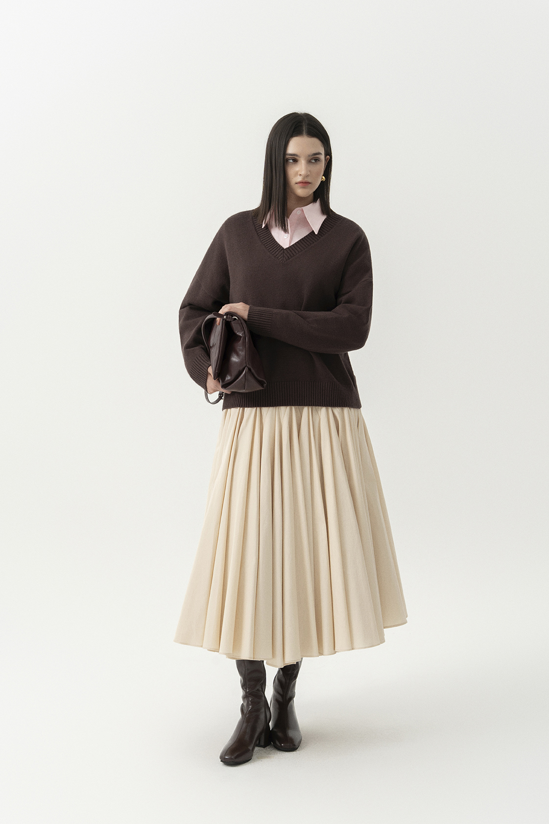 Chân váy mang phong cách thanh lịch, nữ tính và hiện đại. Thiết kế chia múi khéo léo tạo độ xòe tự nhiên, tôn dáng và giúp người mặc di chuyển nhẹ nhàng, duyên dáng. Vải mềm, thoáng mát, giúp người mặc cảm thấy dễ chịu, thoải mái nhưng vẫn giữ dáng váy chuẩn form. Nên giặt khô, tránh dùng máy giặt để giữ form tốt nhất.