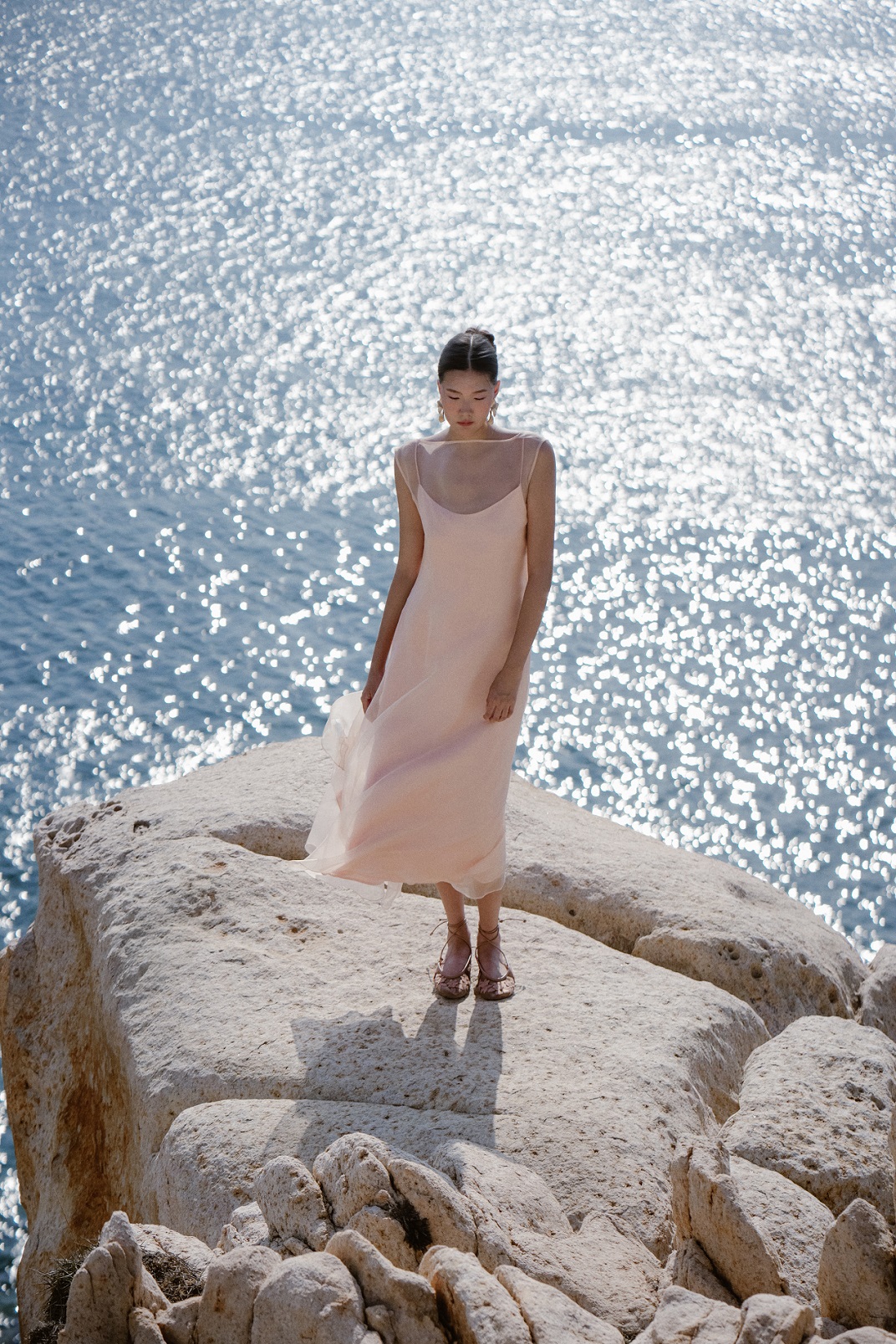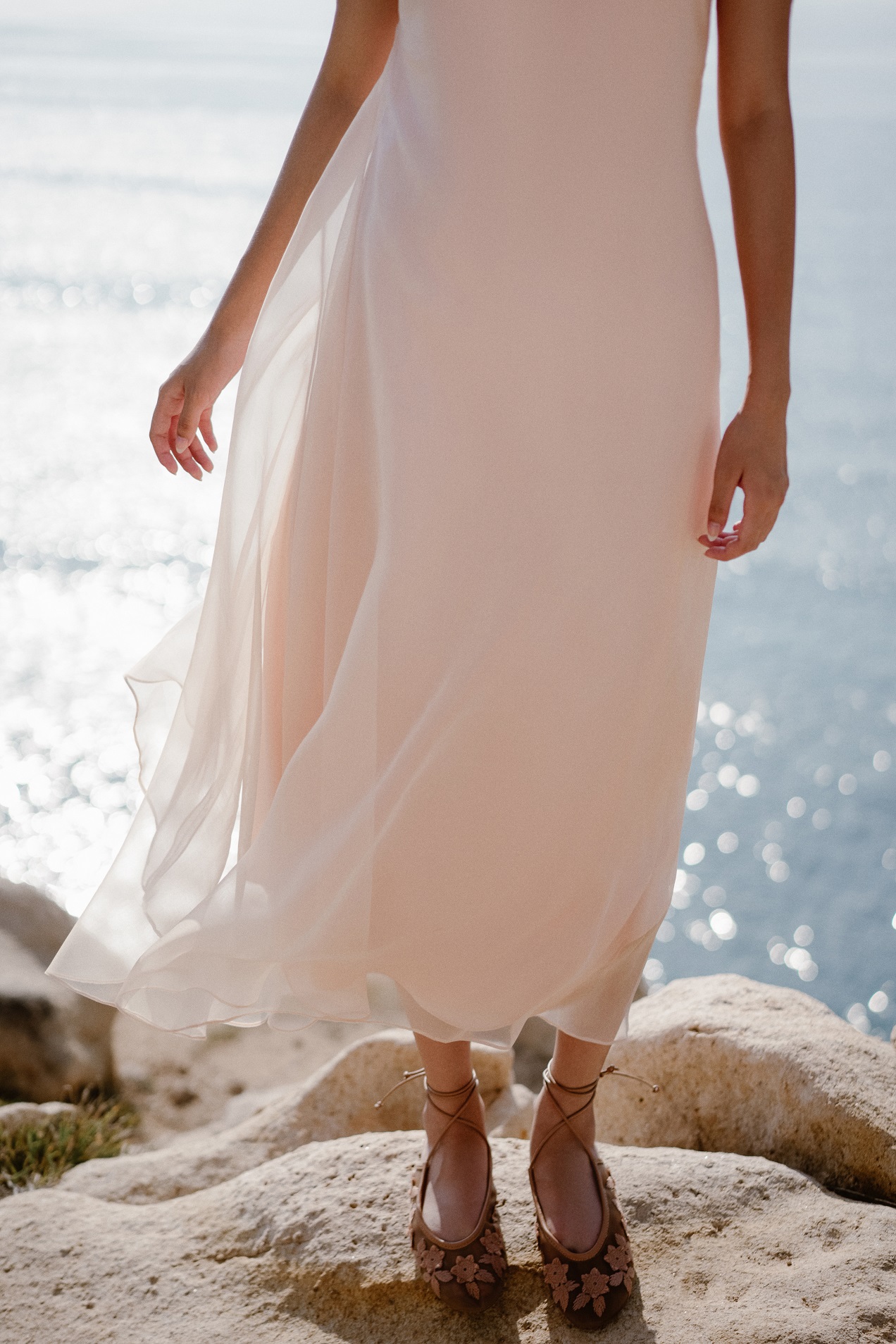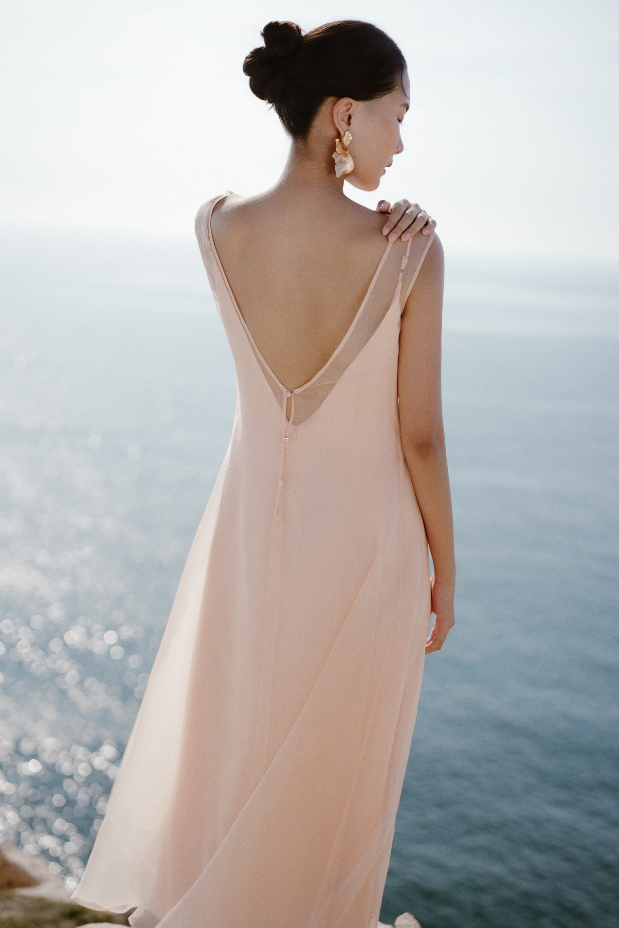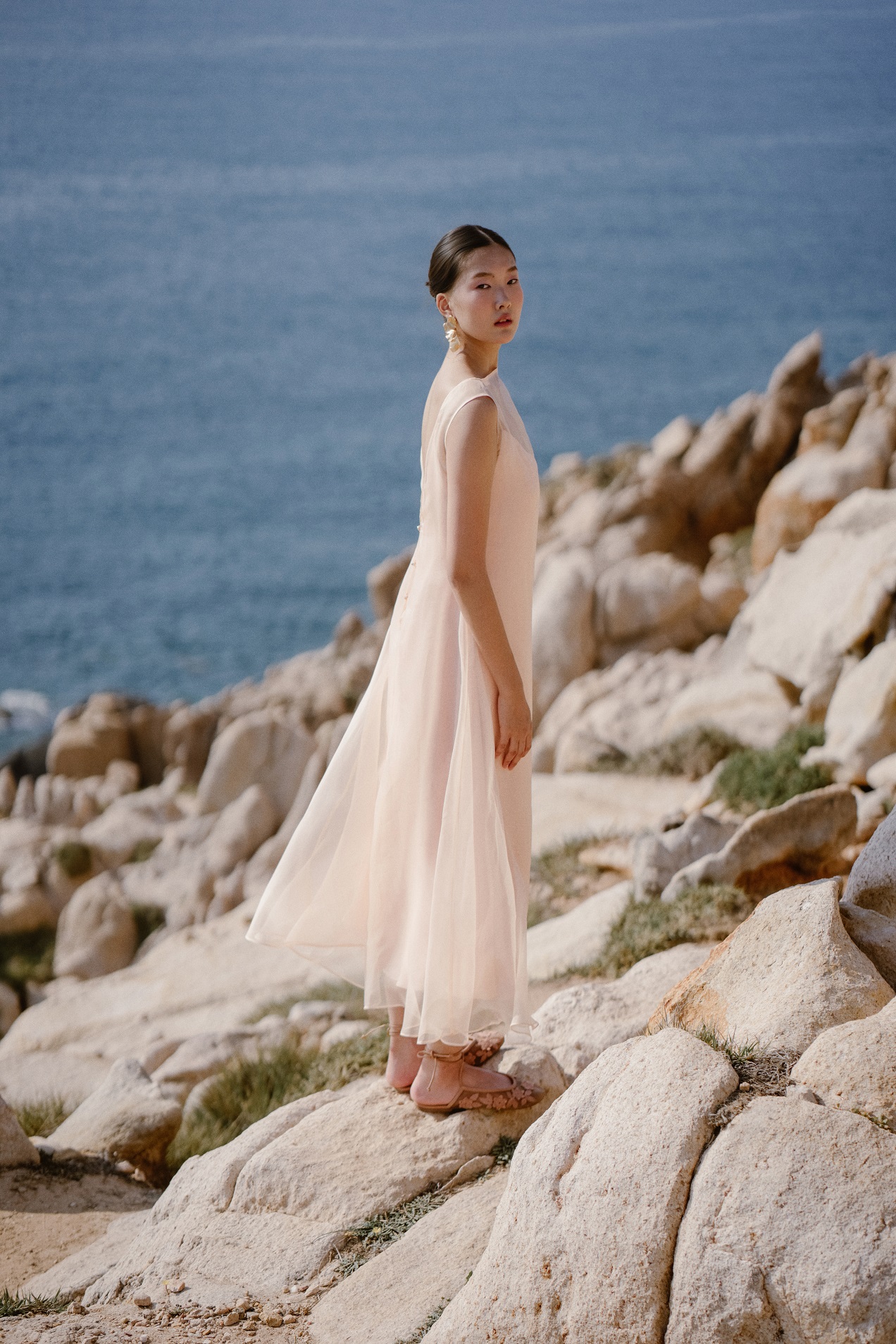 Thiết kế đầm maxi cổ thuyền khoe xương quai xanh khéo léo, mang nét thanh lịch. Váy hai dây lụa satin mềm rũ nhẹ tôn dáng kết hợp cùng váy ngoài organza tơ tằm hiệu ứng trong mờ tạo chuyển động nhẹ nhàng và nữ tính. Tone hồng đào ngọt ngào, nịnh da phù hợp đi chơi, đi tiệc… (gợi ý mix cùng trang sức vàng, makeup tone nhẹ nhàng). Nên giặt tay nhẹ nhàng, tránh vắt mạnh, là hơi.