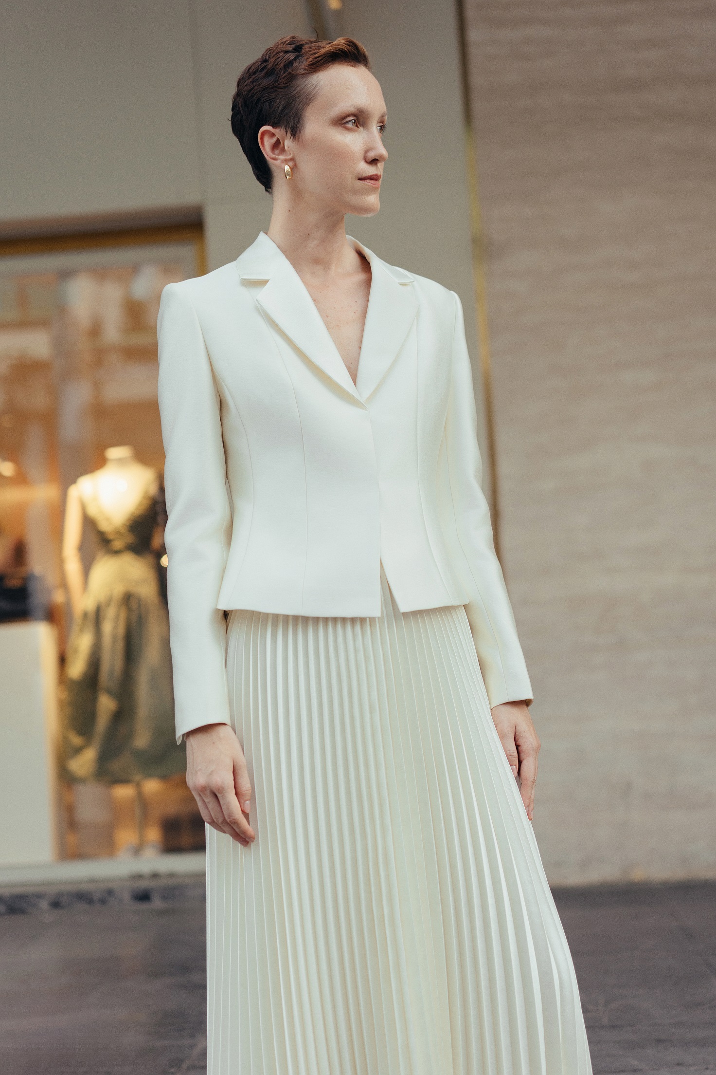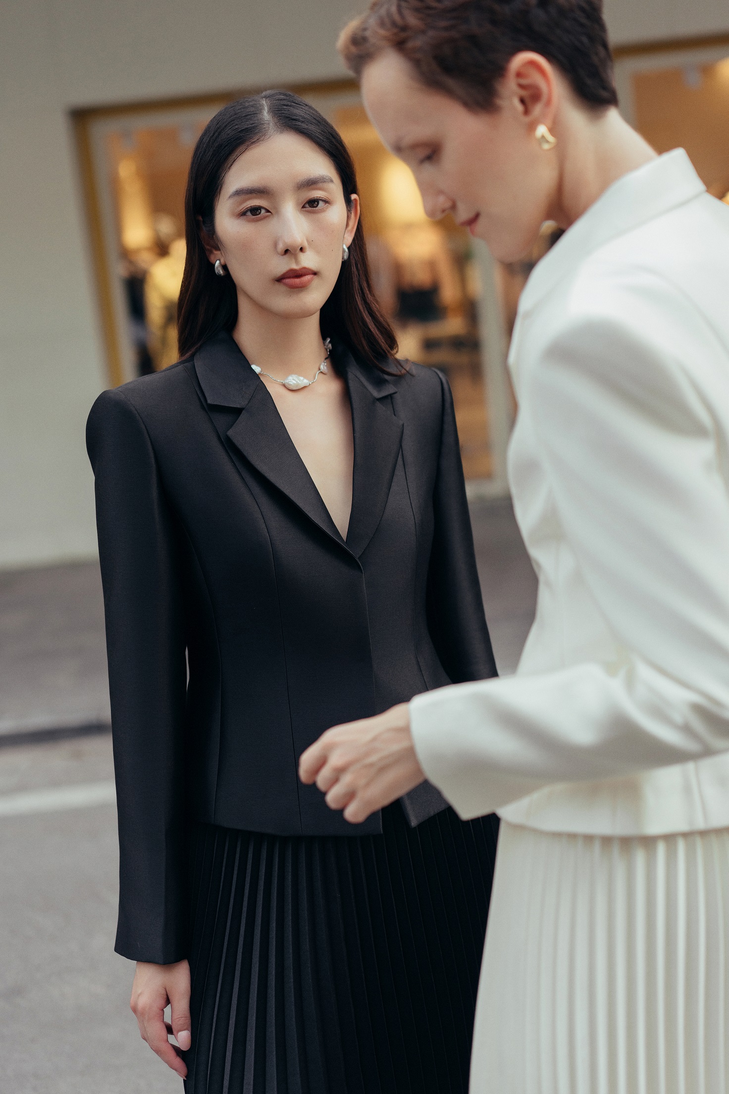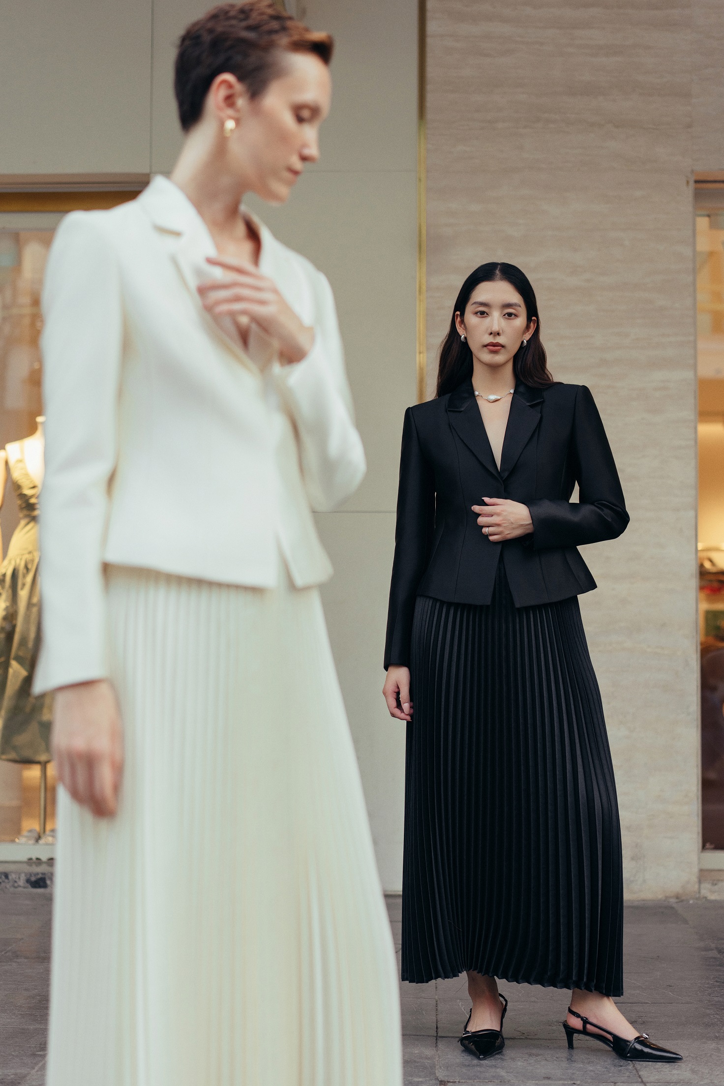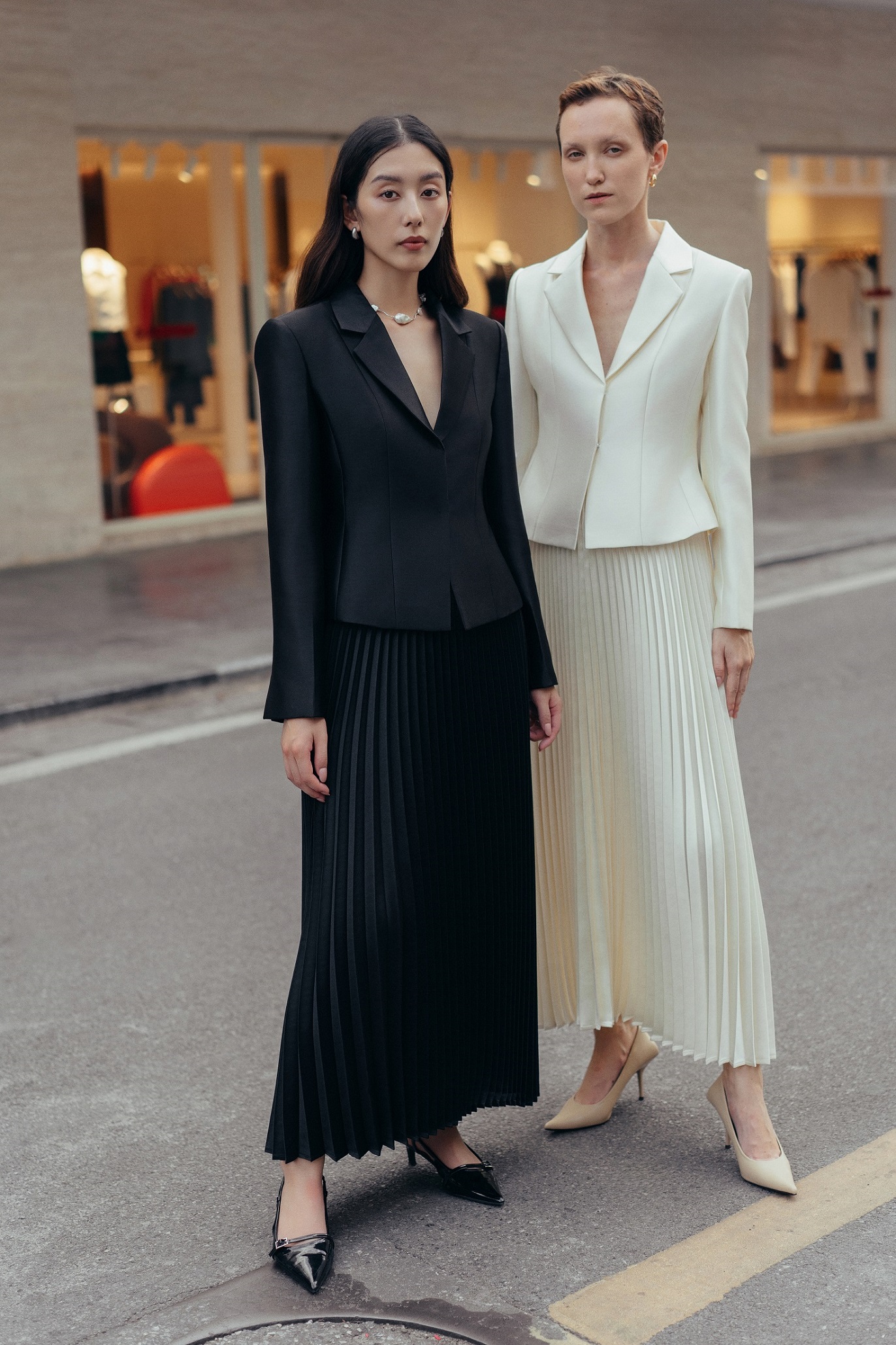 Mang hơi thở retro với dáng ngắn chiết eo, cầu vai rộng và ve cổ vát tròn, chiếc blazer này gợi nhắc thời trang đỉnh cao được ưa chuộng bởi các minh tinh Hollywood thập niên 70. Chất liệu premium taffeta lụa không hề cứng như taffeta thông thường, trái lại mềm mại, giữ form, mang tới sự thoải mái khi ứng dụng hàng ngày.