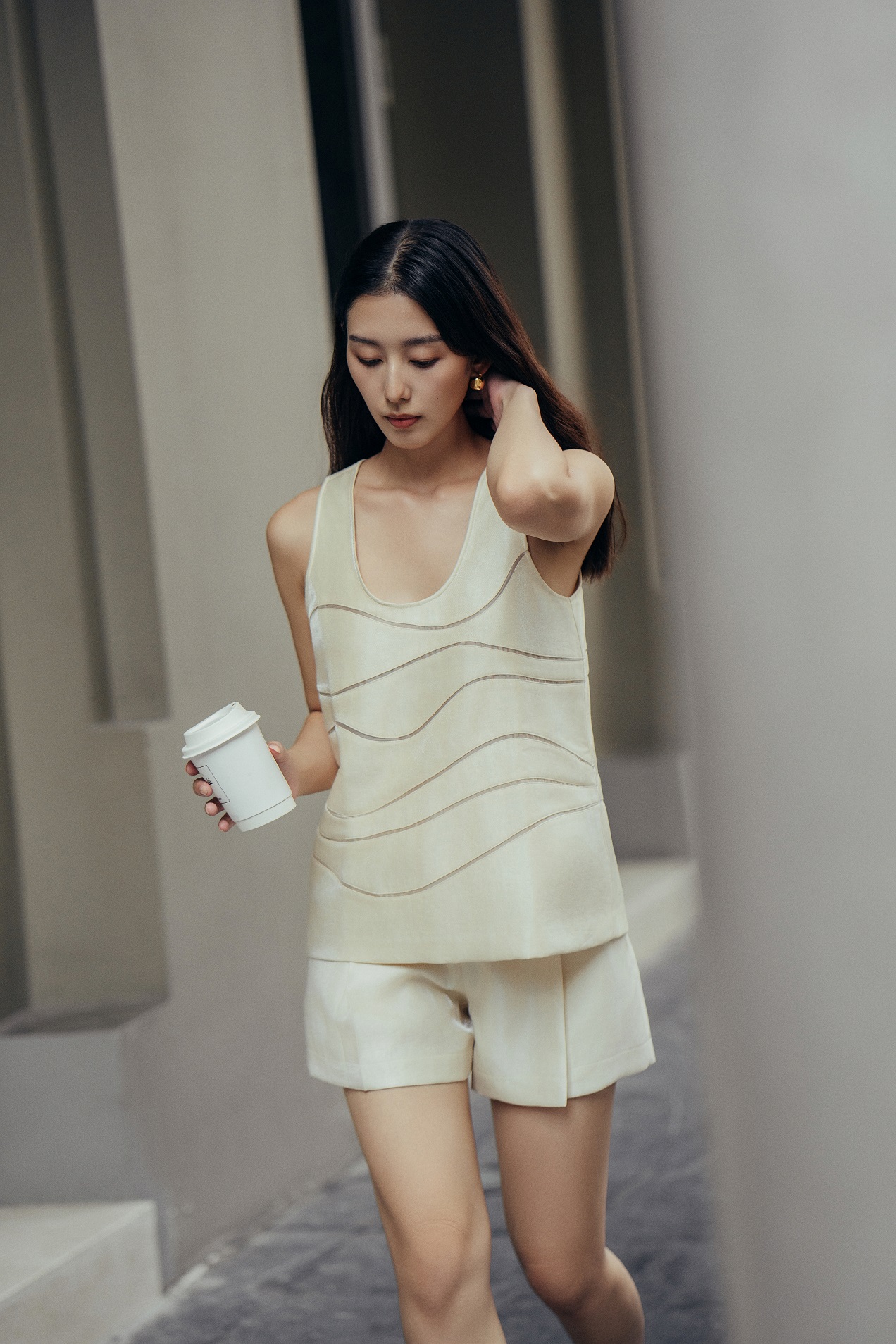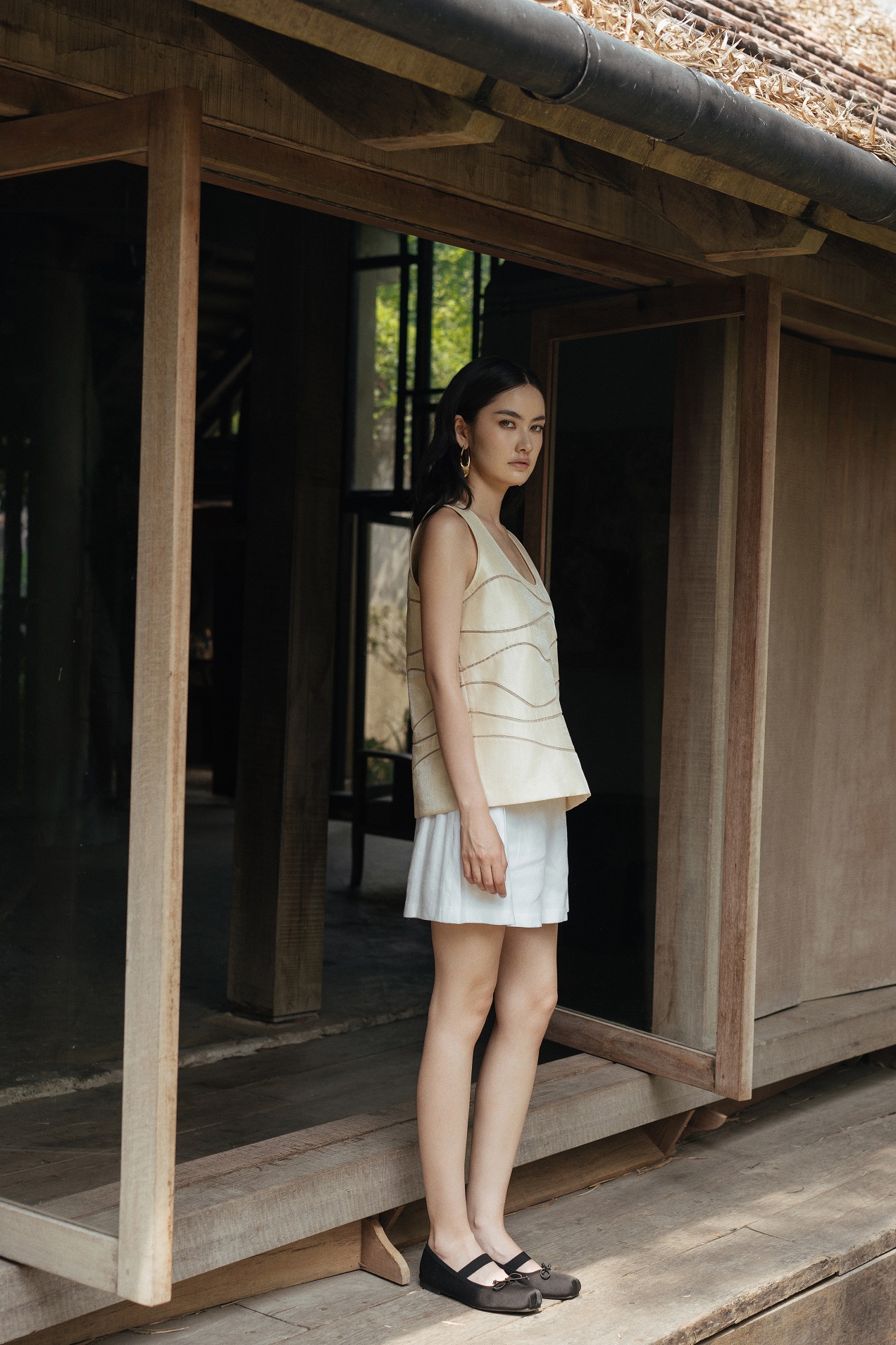 𝗛𝗶𝗹𝗹𝘀𝗶𝗱𝗲 𝗦𝗵𝗼𝗿𝘁 𝗣𝗮𝗻𝘁𝘀 vải taffeta mềm có độ óng nhẹ, tổng thể trở nên hiện đại, trẻ trung nhưng vẫn giữ trọn sự thanh lịch nhờ phom dáng thanh thoát. Một bản phối nhẹ nhàng cho những ngày đầu hè cần sự mát mẻ, thoải mái.