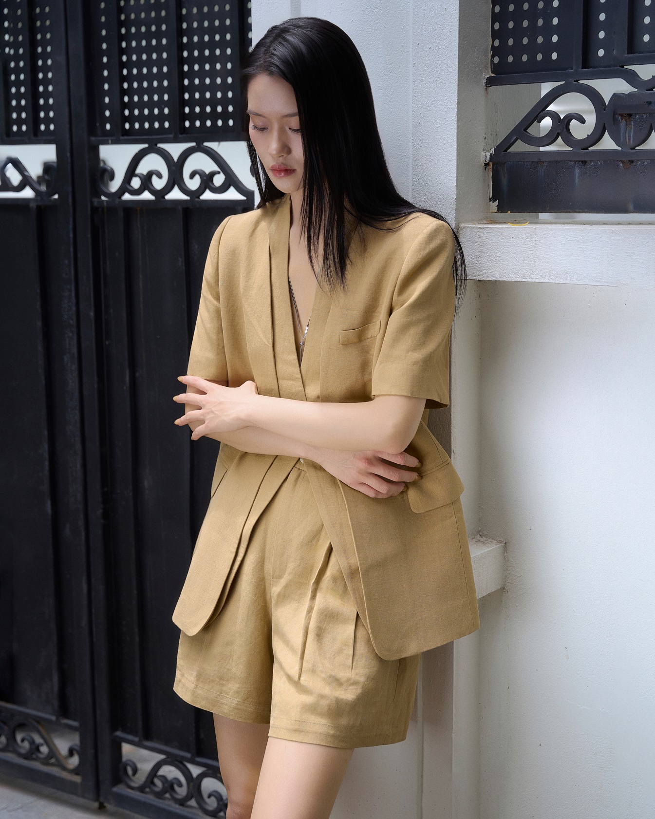 Là một sáng tạo độc đáo từ đội ngũ thiết kế của December Chris, phiên bản blazer tay ngắn với phần ve cổ được tối giản, mang đến cảm giác mới mẻ và hiện đại. Chất liệu linen thoáng nhẹ giúp cân bằng giữa sự thoải mái và phom dáng chuẩn chỉnh.