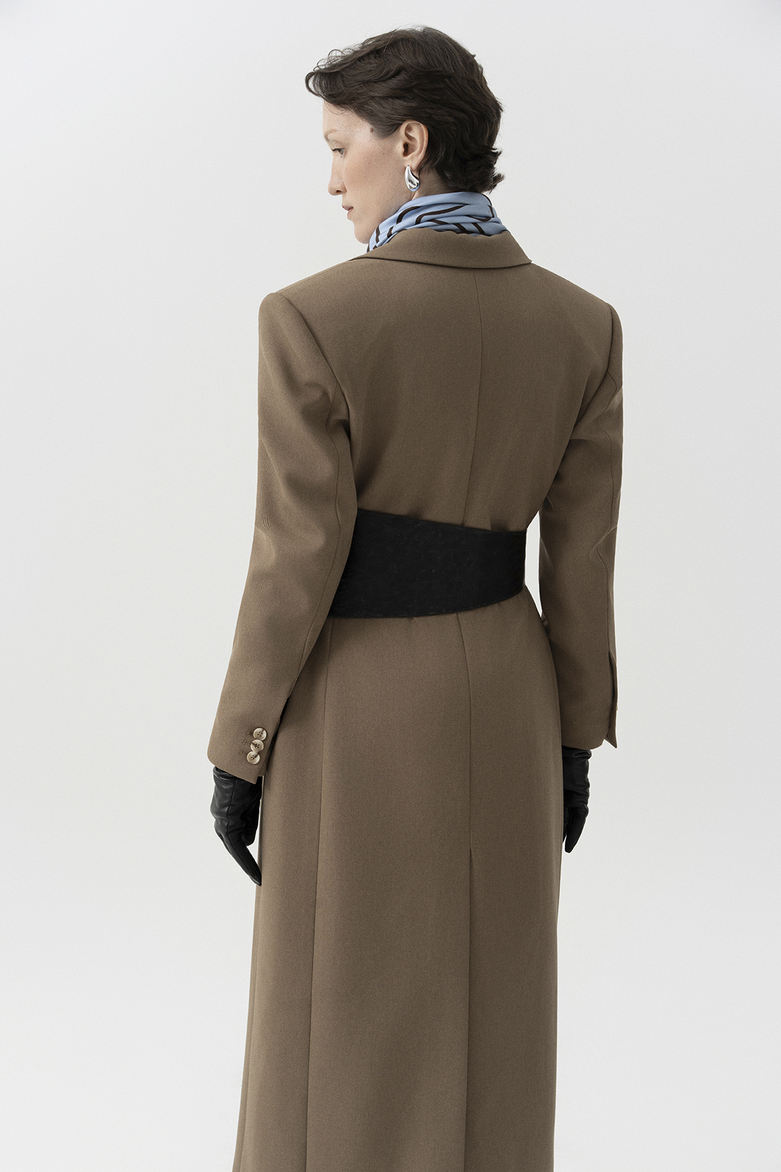 Thiết kế mang tinh thần sang trọng, thanh lịch và hiện đại, đặc trưng của phong cách Thu – Đông. Phom dài tôn dáng, vải 60% cotton và 40% polyester giữ ấm, bề mặt vải thoáng khí, mềm và thấm hút tốt, tạo cảm giác thoải mái. Bề mặt vải dày dặn, sang trọng và và tinh tế.