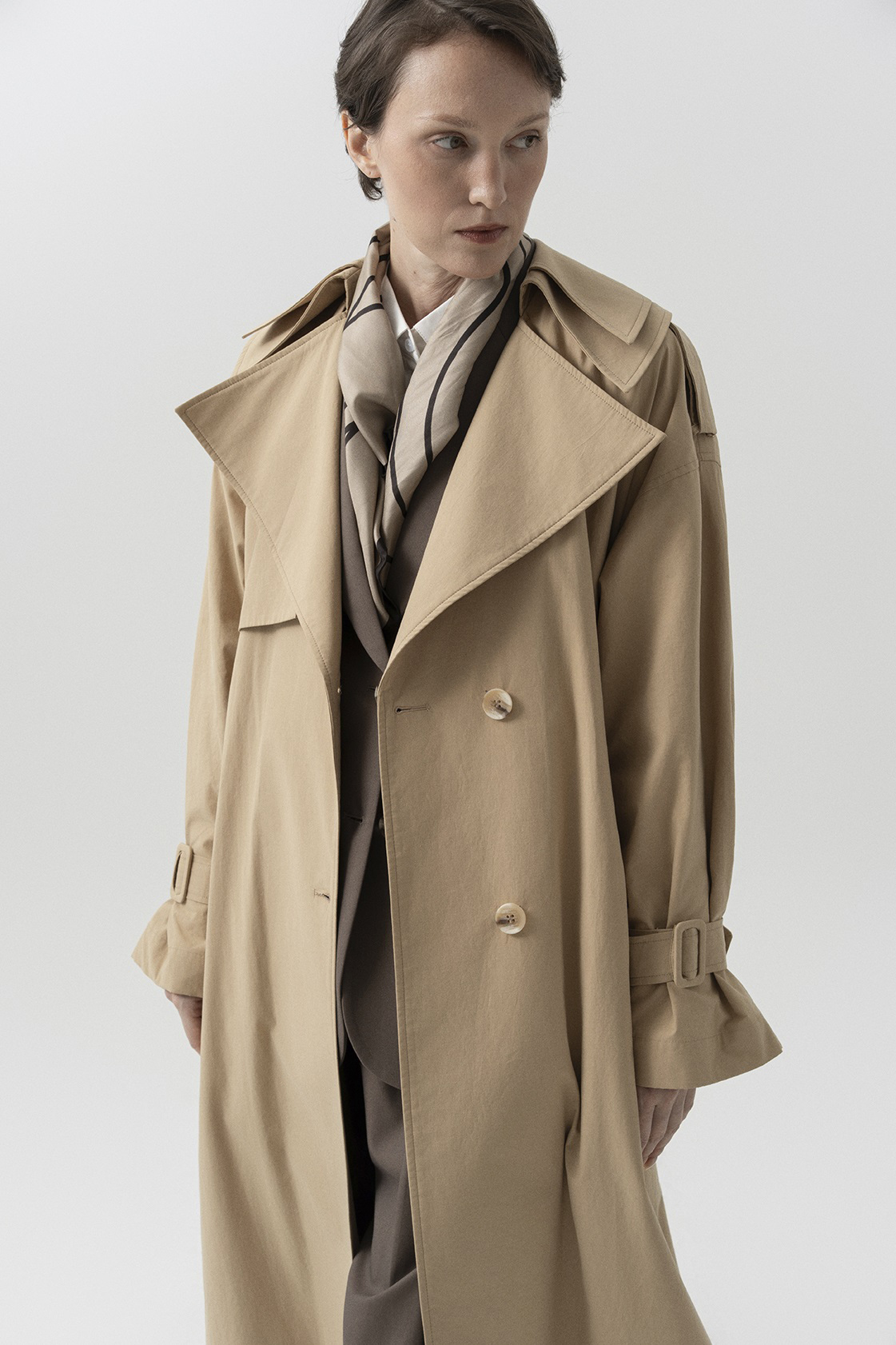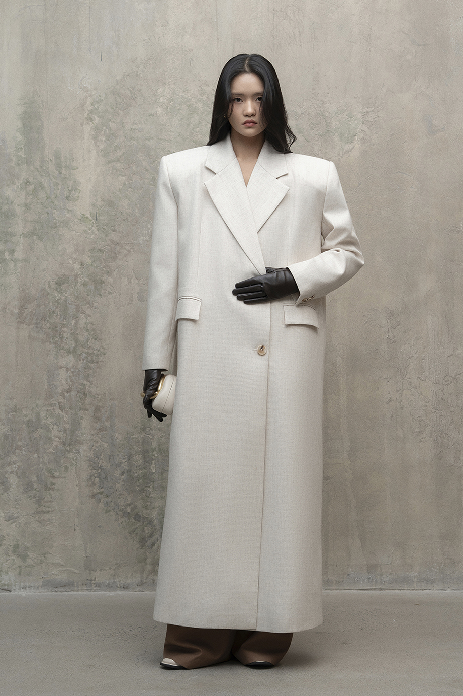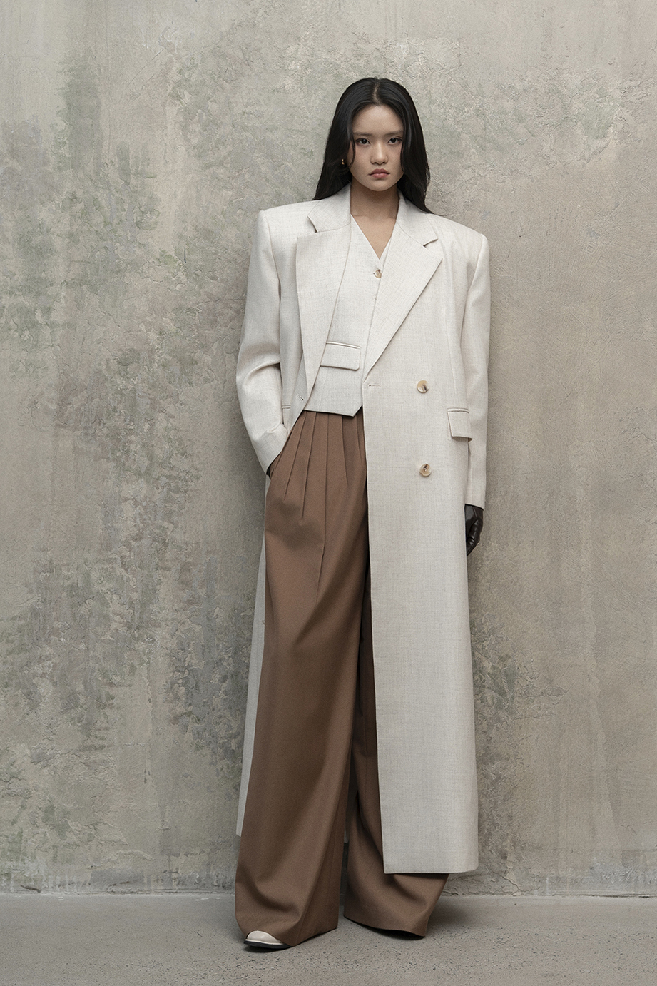 Dáng áo cơ bản hơi oversize kết hợp với chất vải dệt thoi đem lại cảm giác thanh lịch, không kém phần hiện đại cho người mặc. Các chi tiết cổ, tay áo; nắp túi hoàn thiện tỉ mỉ. Chất liệu dạ độ dày vừa phải, độ bền cao, có khả năng giữ ấm cơ thể tốt. Lớp lót lụa mềm mại, thoải mái khi tiếp xúc da. Nên giặt khô, tránh chất tẩy rửa mạnh để giữ được form áo và bề mặt vải.