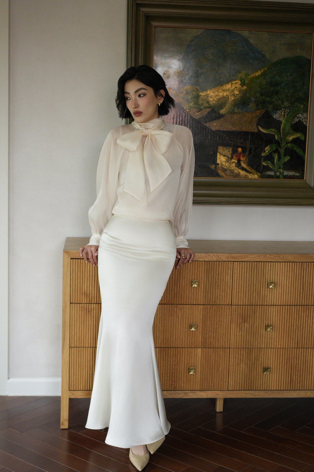 Vượt khỏi giới hạn của một thiết kế kinh điển, 𝗠𝗲𝗿𝗺𝗮𝗶𝗱 𝗦𝗶𝗹𝗸 𝗦𝗸𝗶𝗿𝘁 không chỉ tôn dáng với form đuôi cá ôm nhẹ, tạo hiệu ứng đôi chân dài và vòng ba đầy đặn, mà còn mang đến trải nghiệm mặc tốt nhờ chất liệu lụa Jiangsu được tuyển chọn kỹ và lớp lót lụa lanh mềm giúp chuyển động nhẹ nhàng, thoải mái suốt ngày dài.