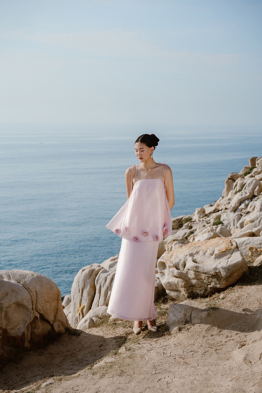 Chân váy bút chì thiết kế cách điệu với lớp tơ ánh và tơ organza lớp ngoài mỏng nhẹ tạo hiệu ứng bay bổng nhẹ nhàng. Form ôm nhẹ nữ tính, xếp lớp tạo bước đi uyển chuyển. Gợi ý mix cùng sơ mi, croptop, tanktop, áo hai dây cho nhiều phong cách từ thanh lịch đến sang trọng, quyến rũ. Tone màu trung tính và pastel dễ lựa chọn phụ kiện. Phù hợp đi làm, đi chơi, event… Nên giặt tay nhẹ nhàng, là hơi, tránh vắt mạnh.