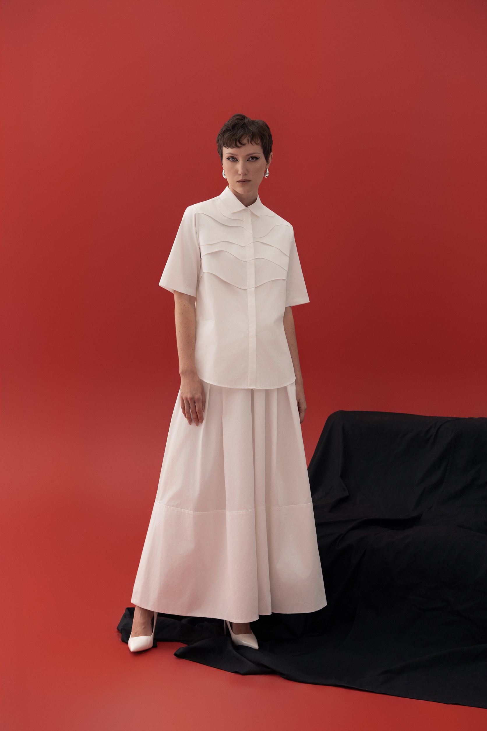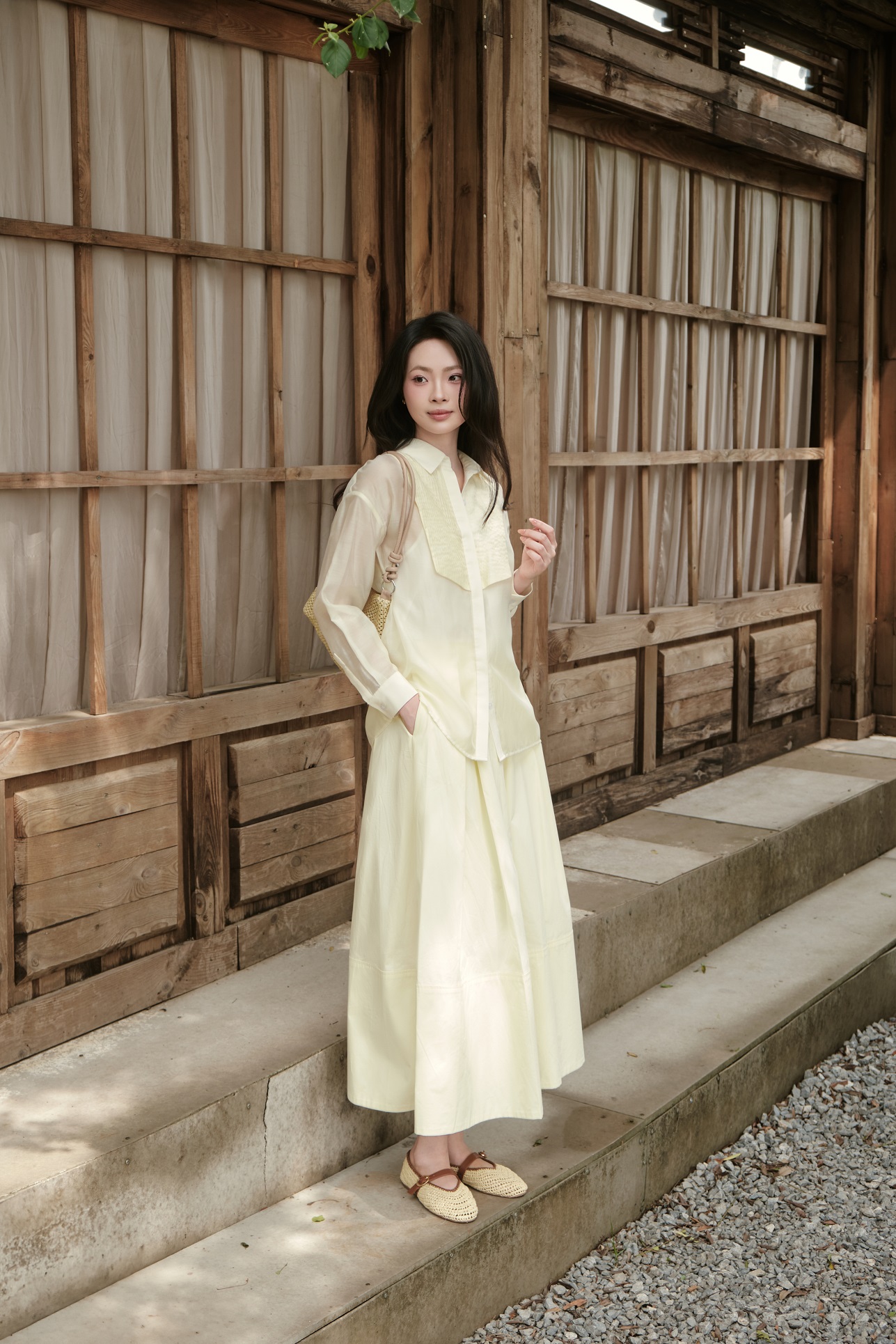 Nếu tủ đồ của bạn còn thiếu một chiếc chân váy dễ mix/match với các outfit hàng ngày, Poplin Cotton Skirt chính là lựa chọn không thể bỏ qua. Dáng A tối giản, được may từ chất cotton poplin có độ cứng vừa phải – đủ đứng phom, đủ mềm mại để tôn lên chuyển động cơ thể. Những đường xếp ly nhẹ nhàng, kín đáo chính là điểm nhấn thanh lịch đầy tinh tế. Một nửa hoàn hảo cho mọi outfit xuống phố ngày thu.