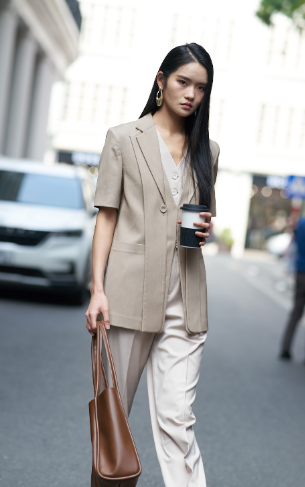 Thiết kế Twill short-sleeved blazer by December Chris lần đầu ra mắt mùa xuân 2024. Từ phom blazer classic quen thuộc, Twill short-sleeved blazer có phần tay lỡ hợp thời tiết xuân - hè, cùng điểm nhấn quan trọng ở chi tiết thân áo tạo kiểu cổ kép và tà kép, mang tới vibe độc đáo và phá cách cho thiết kế blazer.