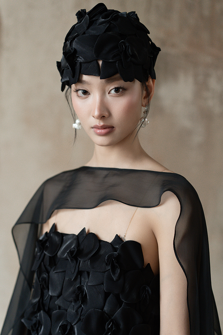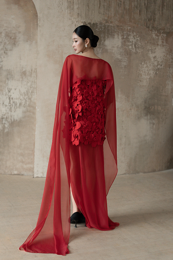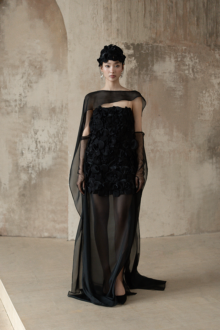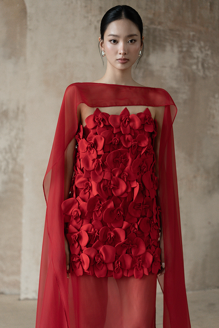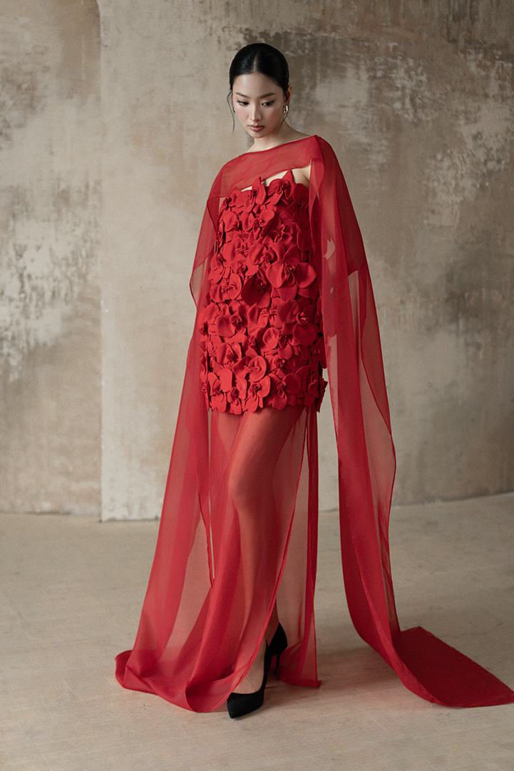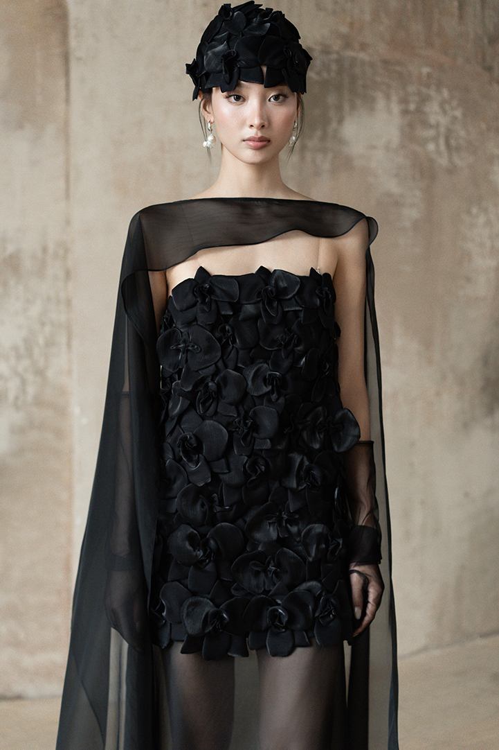 SCULPTED ORCHID APPLIQUÉ DRESS